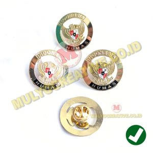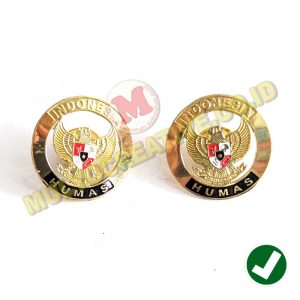 Mulyo Creative sedia, jual dan terima pesanan pembuatan macam-macam perlengkapan dan aksesoris dengan kualitas terbaik dan harga yang murah. Salah satu yang telah kami produksi dan jual adalah Lencana Pin Garuda Humas Indonesia Pin Humas Warna Hitam Bulat Murah Bahan Kuningan Bahan Logam Kuningan.