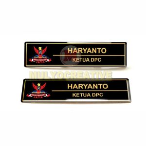 – Waktu pembuatan lebih cepat dibanding name tag tipe logam