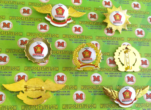 Beragam Model Pin Gerindra terbuat dari logam kuningan Order dan Pesan sekarang juga di Mulyo Creative