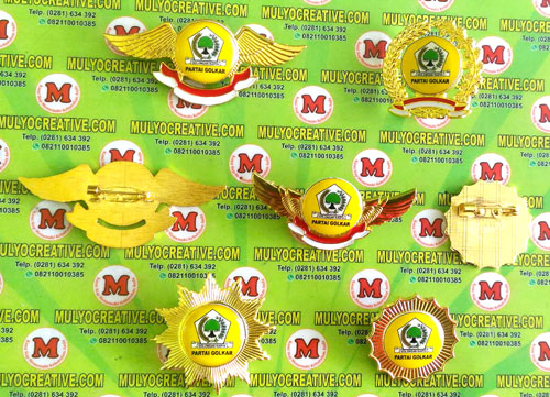 Beragam Model Pin Golkar/ Partai Golongan Karya terbuat dari logam kuningan Order dan Pesan sekarang juga di Mulyo Creative