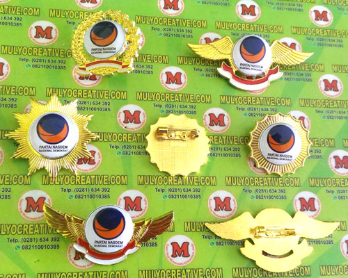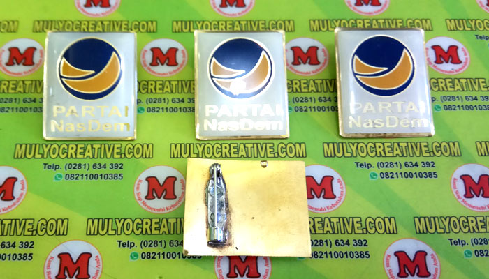 Beragam Pin Nasdem/ Partai Nasional Demokrat terbuat dari logam kuningan Order dan Pesan sekarang juga di Mulyo Creative