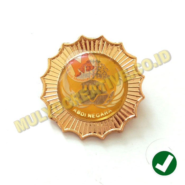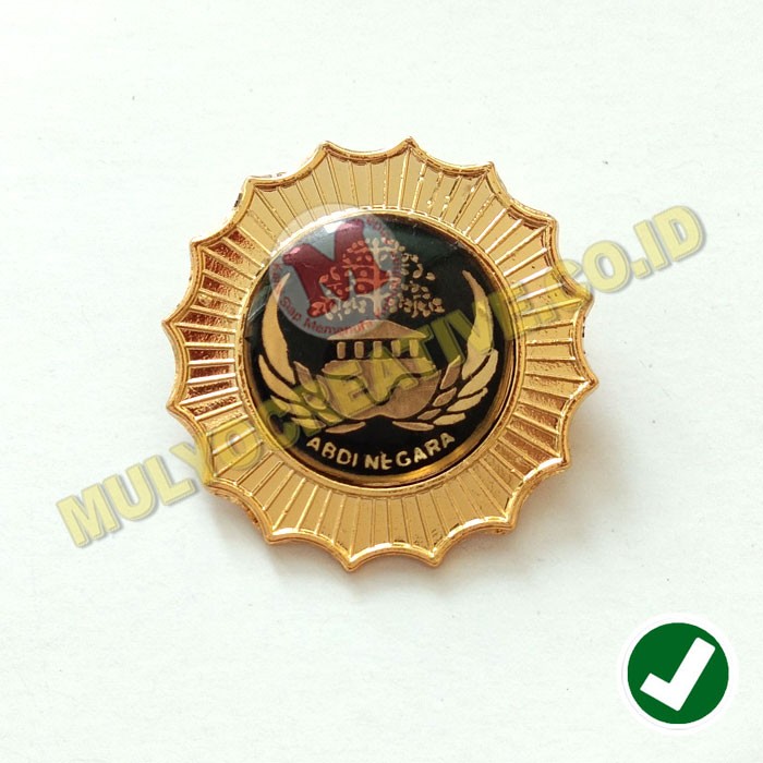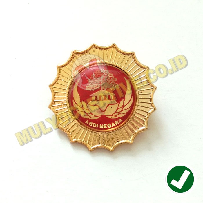 Mulyo Creative sedia, jual dan terima order pembuatan Pin Abdi Negara Harga Murah yang dibuat dengan teknik pengolahan cor logam/diecast logam kuningan sehingga lebih awet dan tampak eksklusif.
