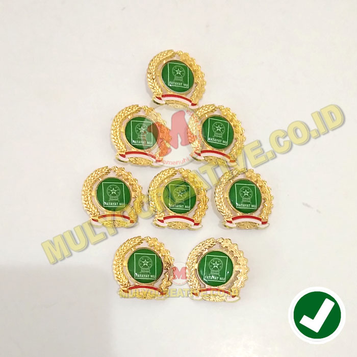 Mulyo Creative Jual, sedia dan menerima pesan pembuatan Lencana Pin Model Padi Dan Kapas Logo Fatayat NU. Dibuat dari logam kuningan cor / Diecast & dilapisi dengan fiber lycal resin.