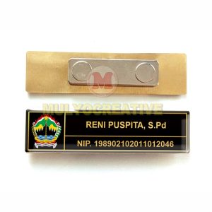 – Waktu pembuatan lebih cepat dibanding name tag tipe logam