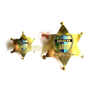 Mulyo Creative menjual dan terima order pembuatan macam-macam perlengkapan dan aksesoris dengan kualitas terbaik dan harga yang murah. Salah satu yang kami jual adalah Pin Andalan Model Bintang Warna Gold