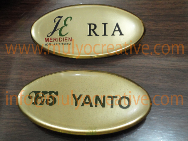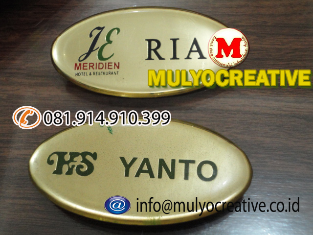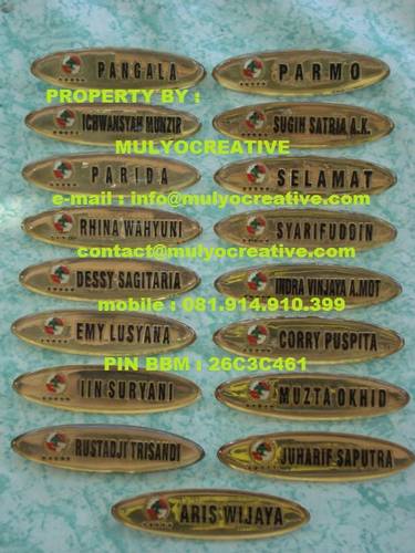 Mulyo Creative menerima pemesanan pembuatan dan menjual papan nama dada dengan harga yang di sesuaikan dengan desain pemesanan.