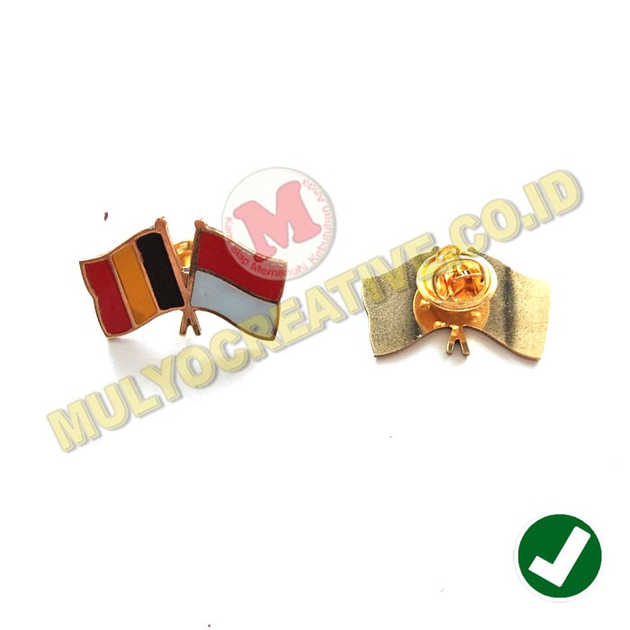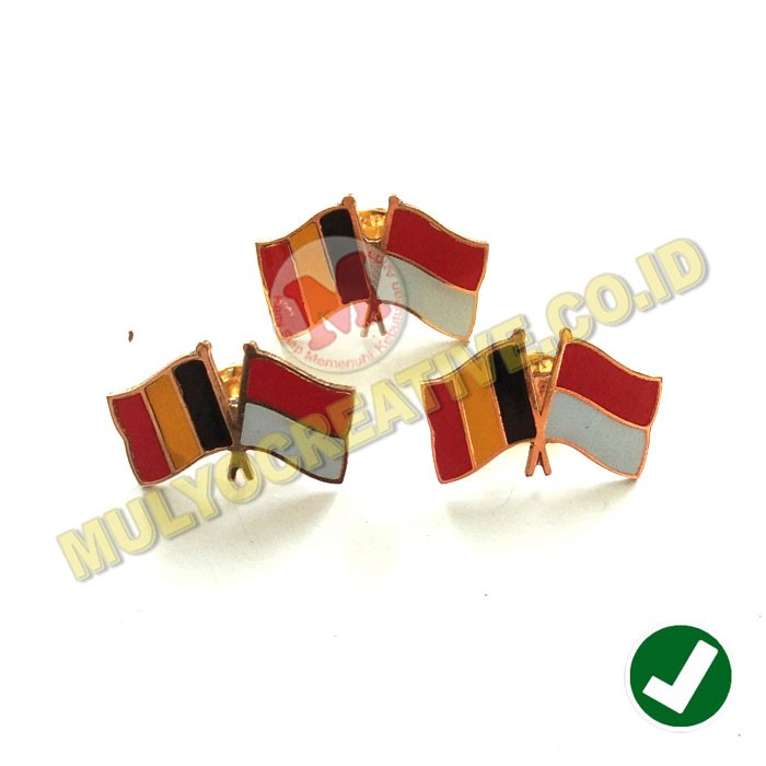 Mulyo Creative sedia, jual dan terima order pembuatan Pin Bendera Persahabatan Indonesia Belgia yang dibuat dengan teknik pengolahan cor logam/diecast logam kuningan sehingga lebih awet dan tampak eksklusif.