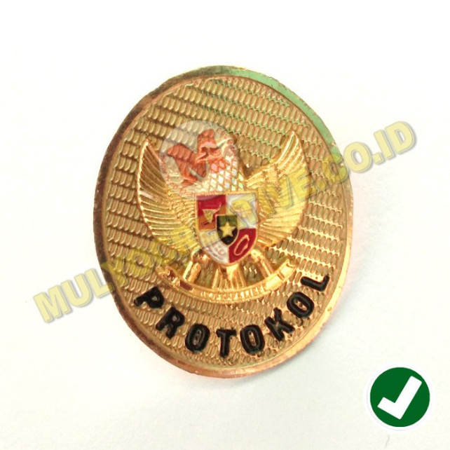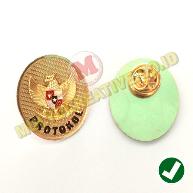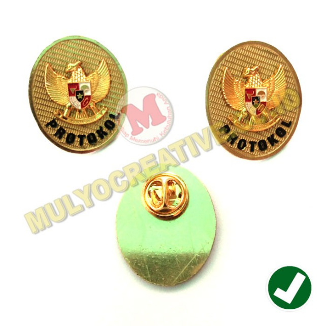 Mulyo Creative Jual, sedia dan menerima pesan pembuatan Pin Protokol – Lencana Protokol Garuda , yang dibuat dari bahan kuningan & ditempah dengan teknik cor (diecast) logam.