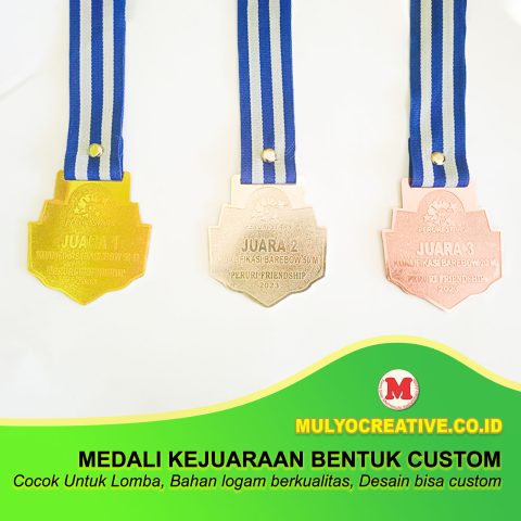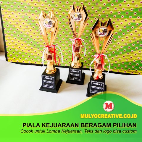 Mulyocreative menyediakan berbagai perlengkapan lomba kejuaraan. Adapun produk yang biasa kami buat diantaranya adalah piala, medali, plakat, dll dengan desain yang sudah ada, atau bisa juga dengan menambahkan nama lomba, daerah dan keterangan lainnya yang dikehendaki. Kami biasa melayani pembelian banyak sekaligus, atau pembelian satuan. contoh produk yang kami buat: